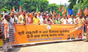 କେନ୍ଦ୍ର ସରକାରଙ୍କ କୃଷକ କଲ୍ୟାଣକାରୀ ଯୋଜନାକୁ ରାଜ୍ୟ ସରକାରଙ୍କ ବାଟମାରଣାକୁ ପ୍ରତିବାଦ